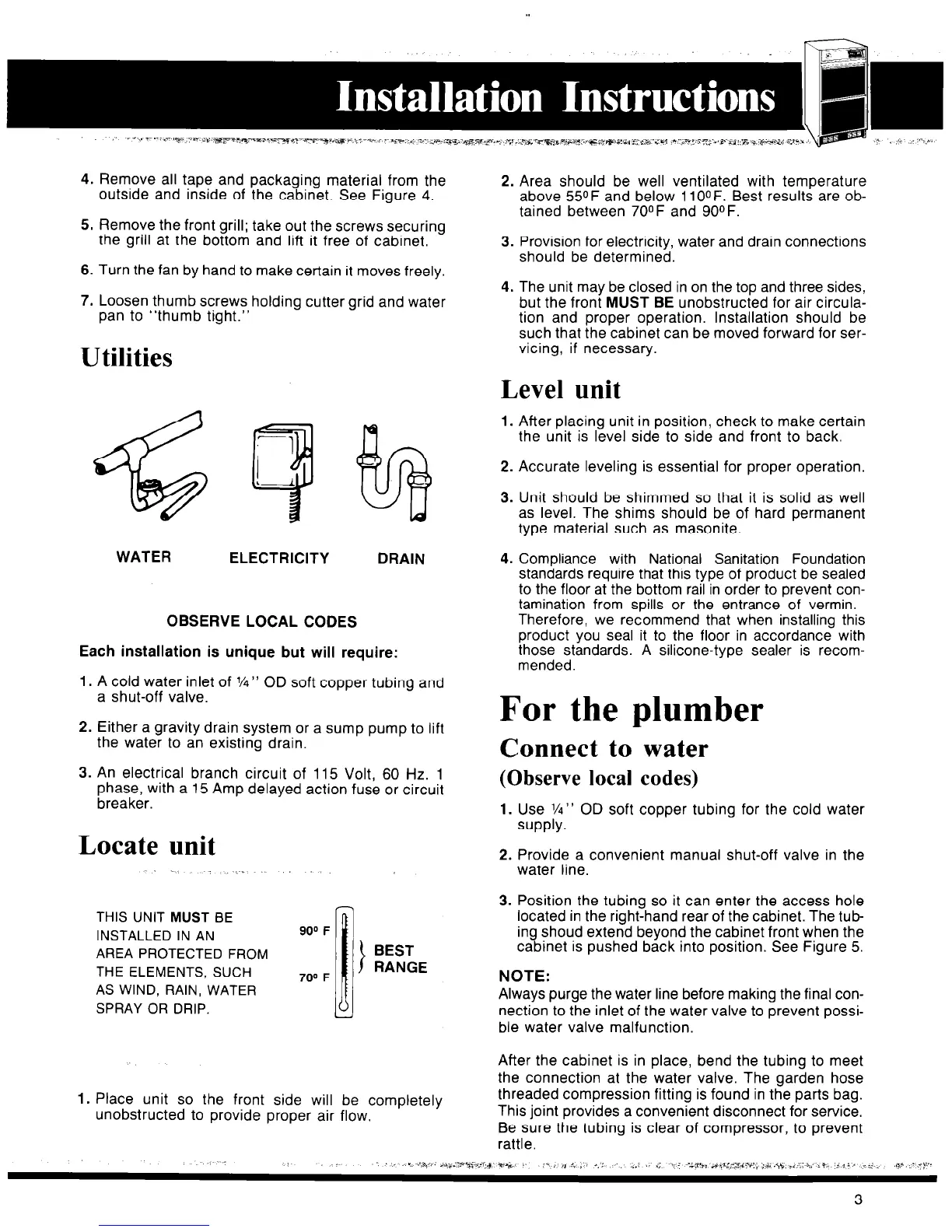 1. Use l/4” OD soft copper tubing for the cold water