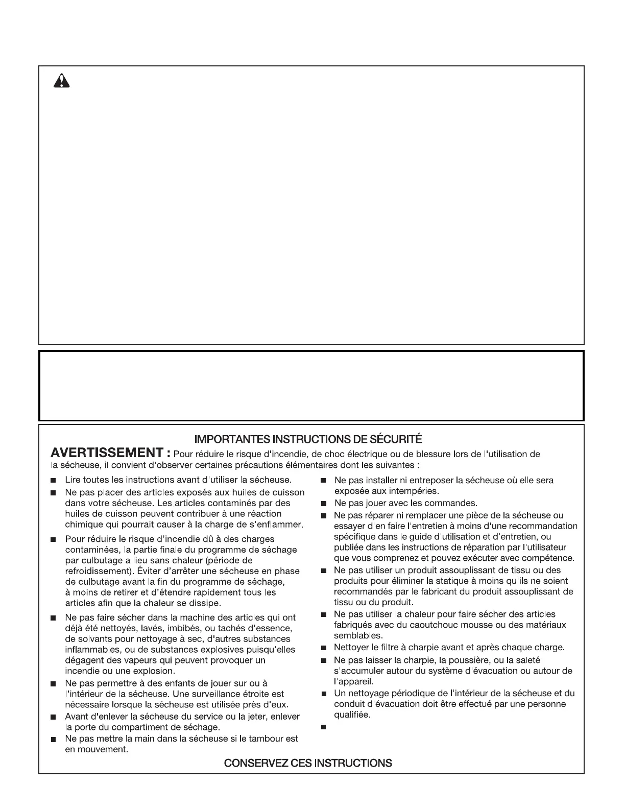 Le non-respect des avertissements de sécurité peut causer des dommages à la propriété,