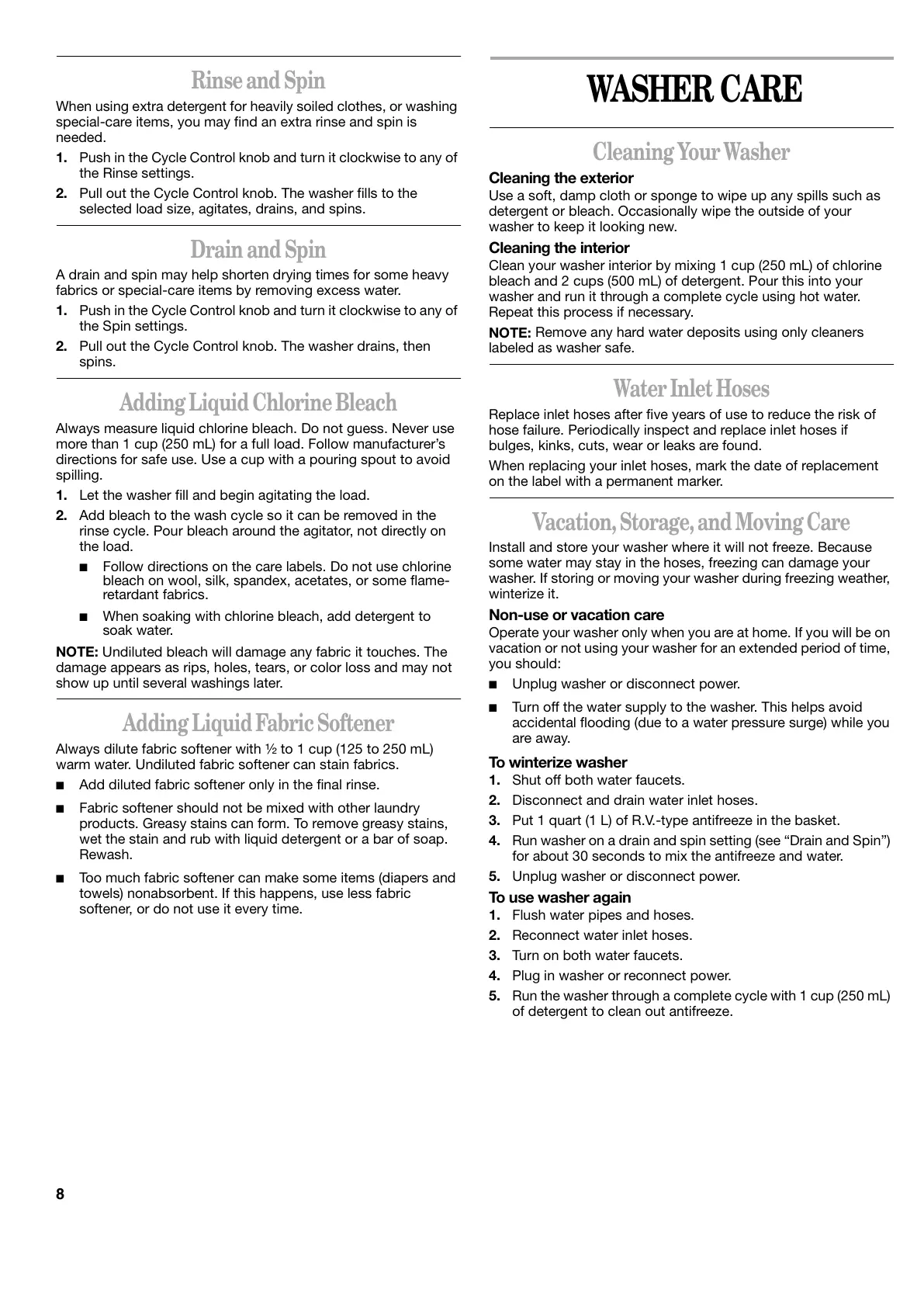 vacation or not using your washer for an extended period of time,