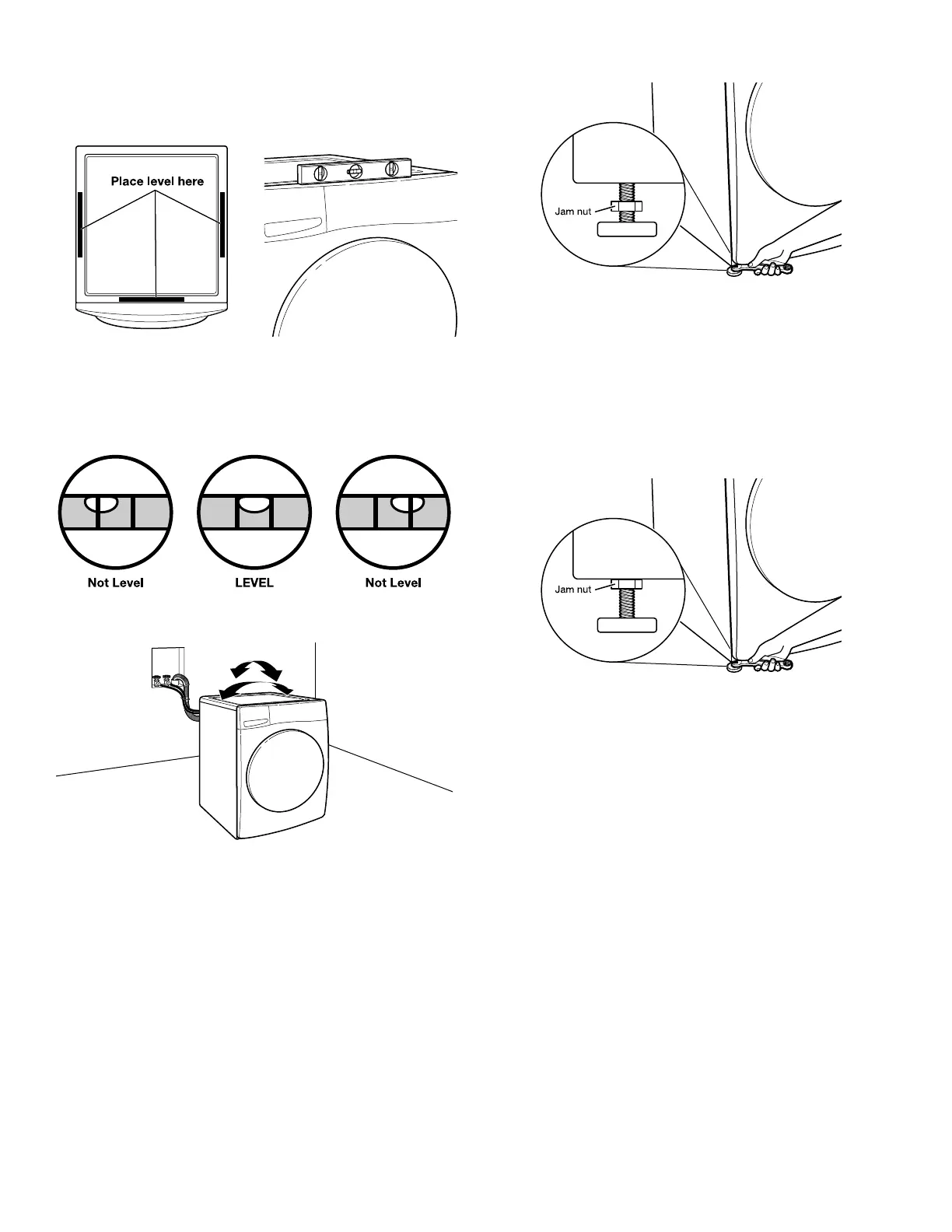 feet” and “Tighten leveling feet”, repeating as necessary.