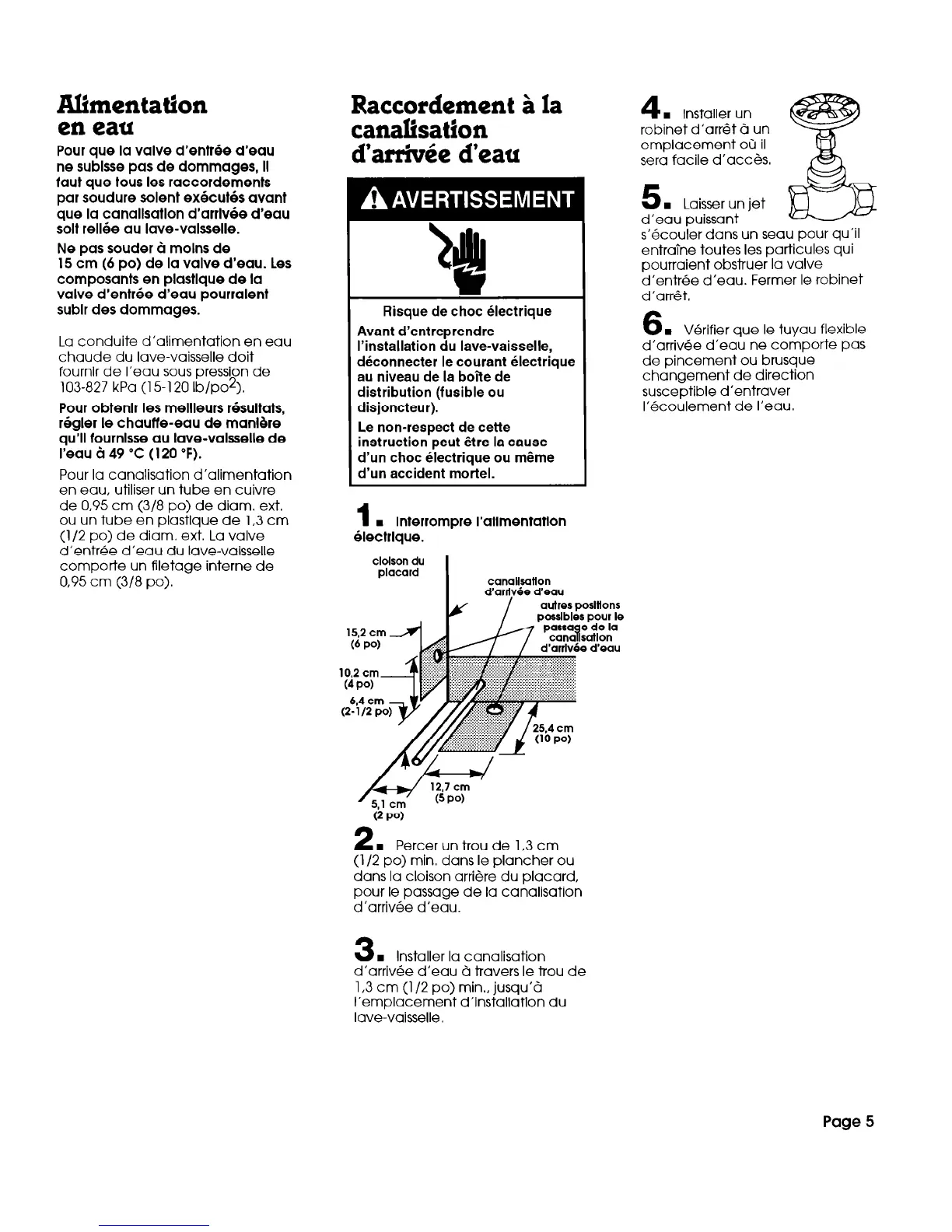 15 cm (6 po) de la valve d’eau. Les