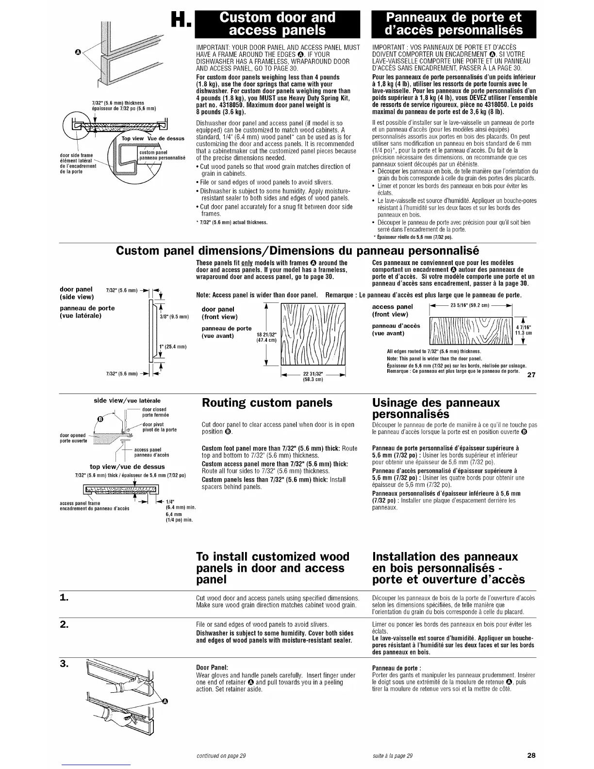 dishwasher. For custom door panels weighing more than