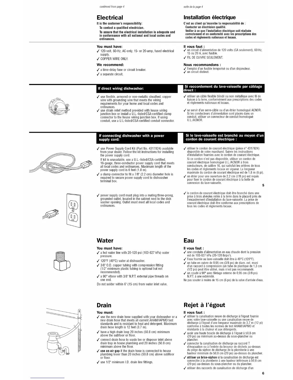 V" I'eaufournie au lave-vaisselledolt #,tre_ 49°C (120°F).