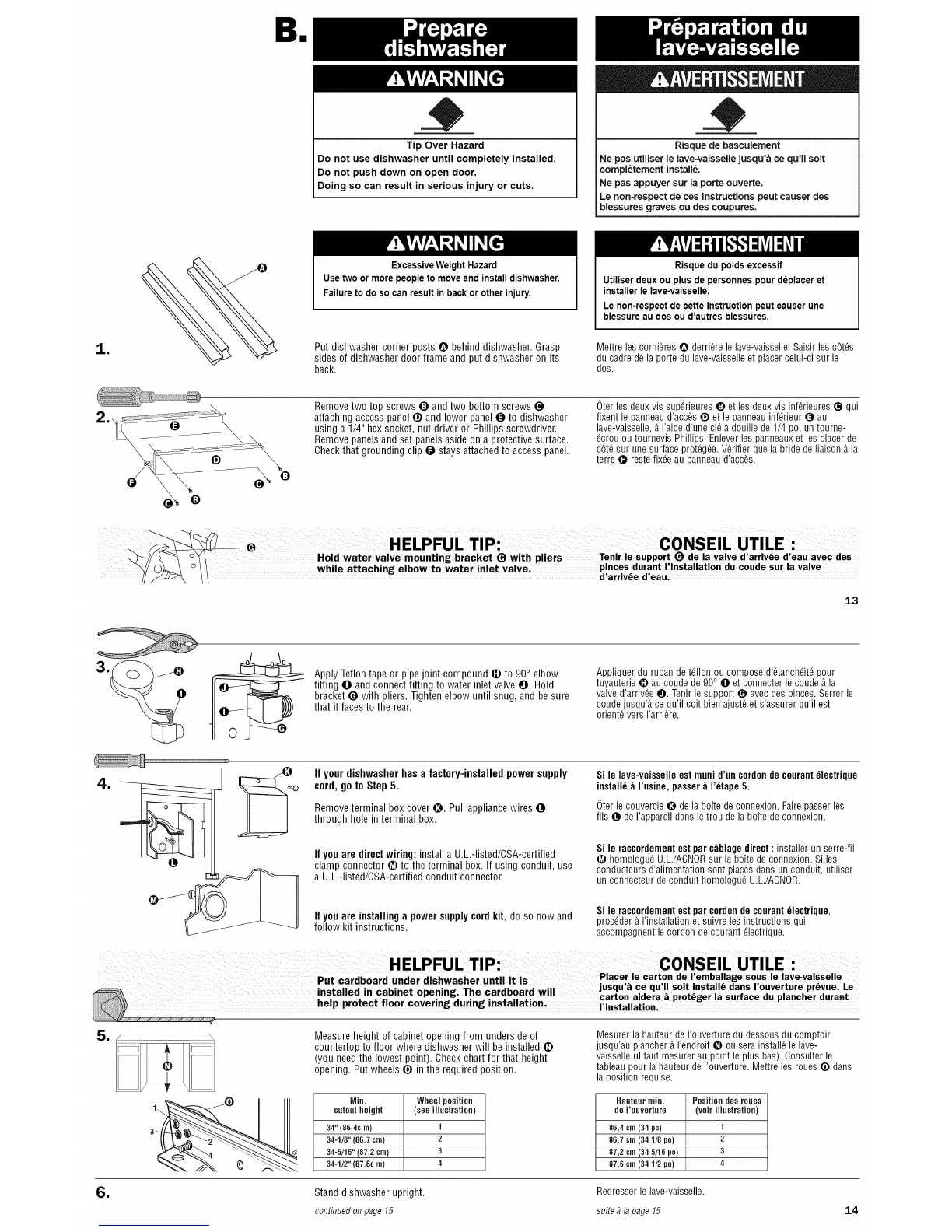 Put dishwasher corner posts @ behind dishwasher. Grasp