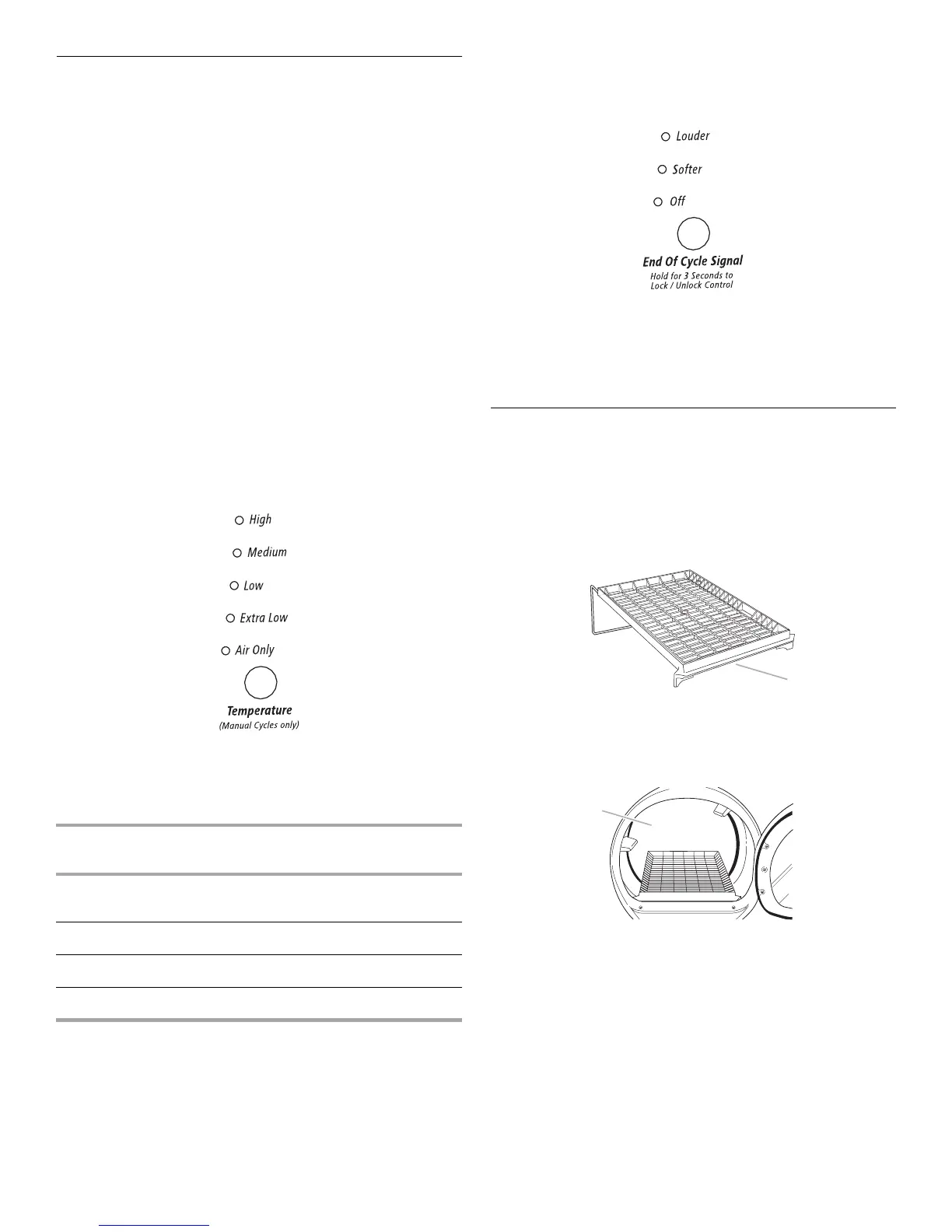 Temperature settings are used with the Manual Cycles. Press