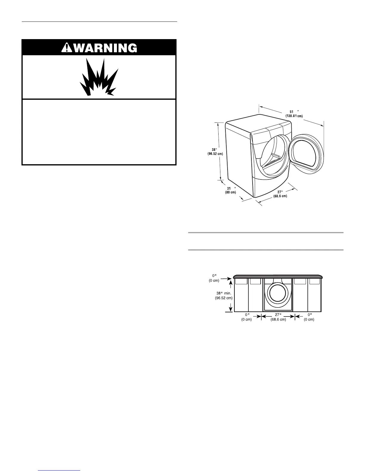 Additional spacing of 1 in. (2.5 cm) on all sides of the dryer is