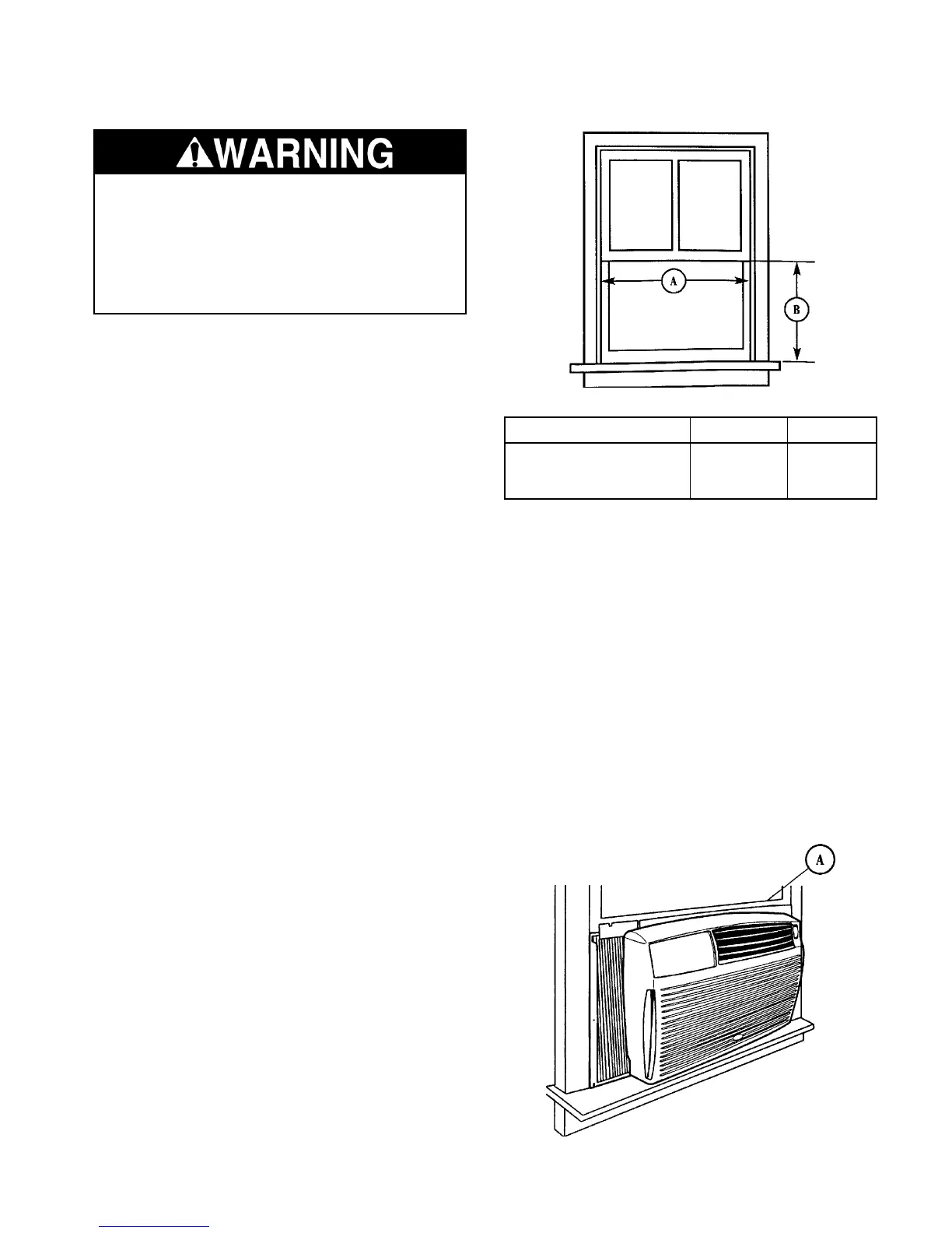 • A large enough opening for the air condi-