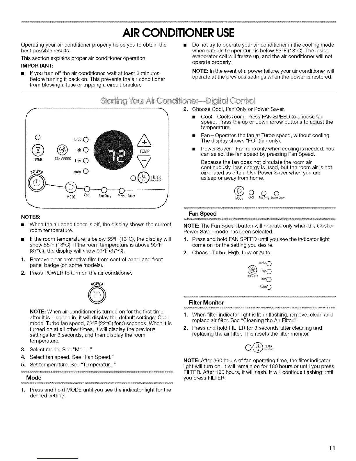 NOTE: In the event of a power failure, your air conditioner will