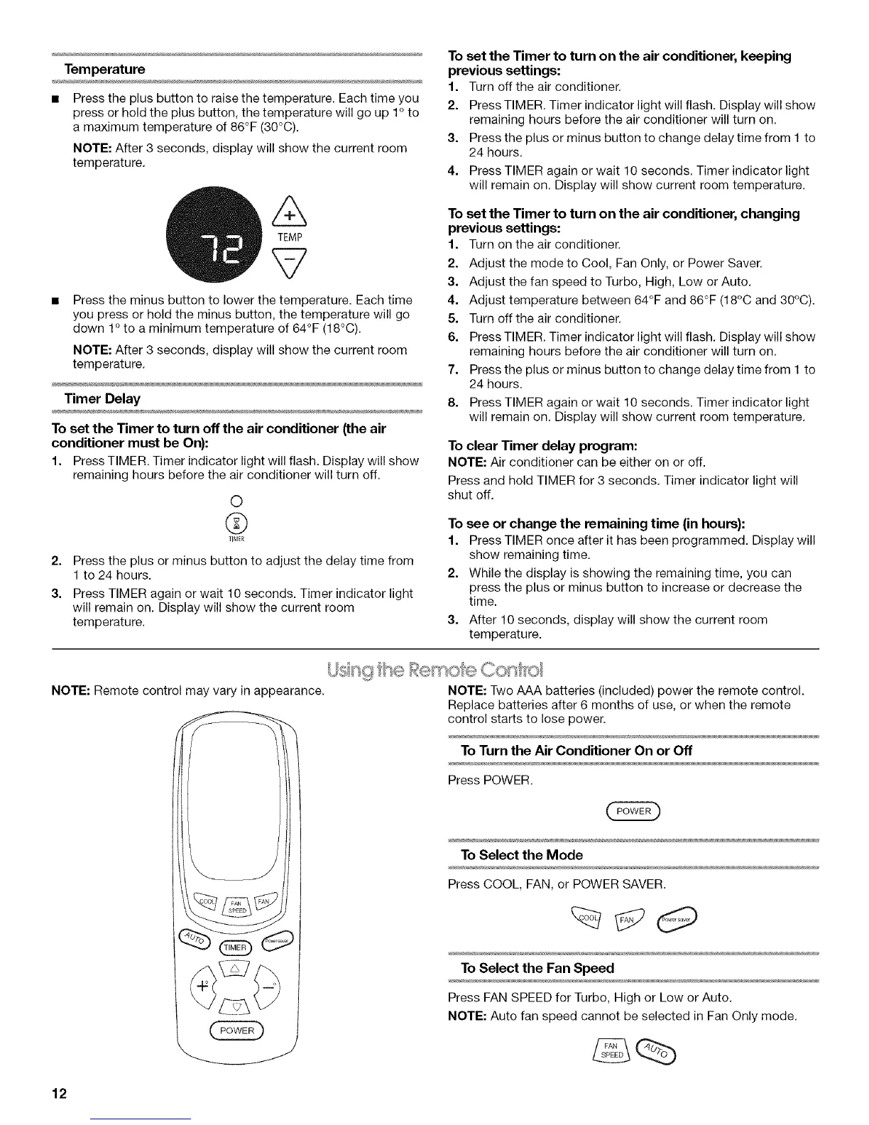 NOTE: Air conditioner can be either on or off.