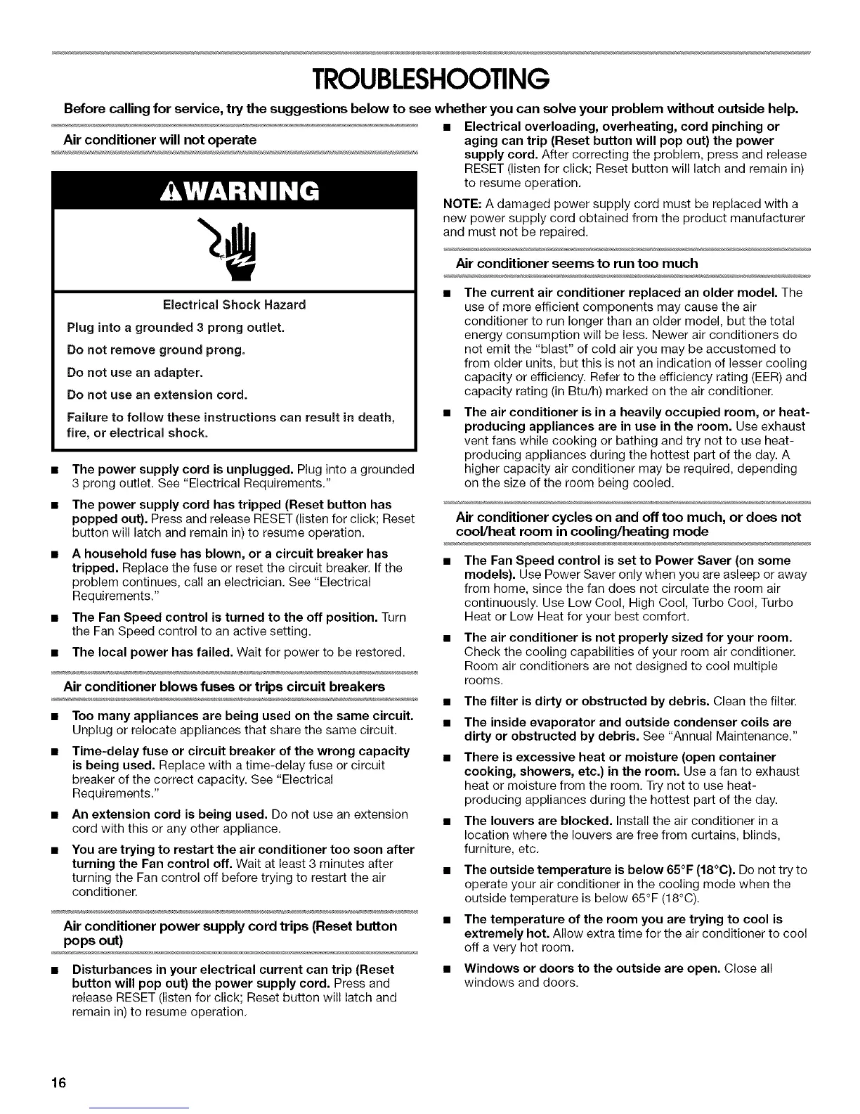 problem continues, call an electrician. See "Electrical
