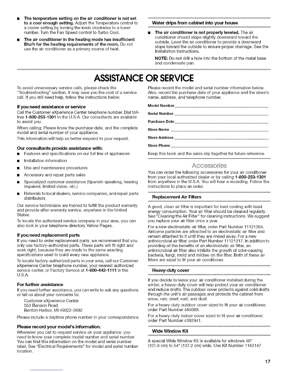 To locate factory-authorized parts in your area, call our Customer