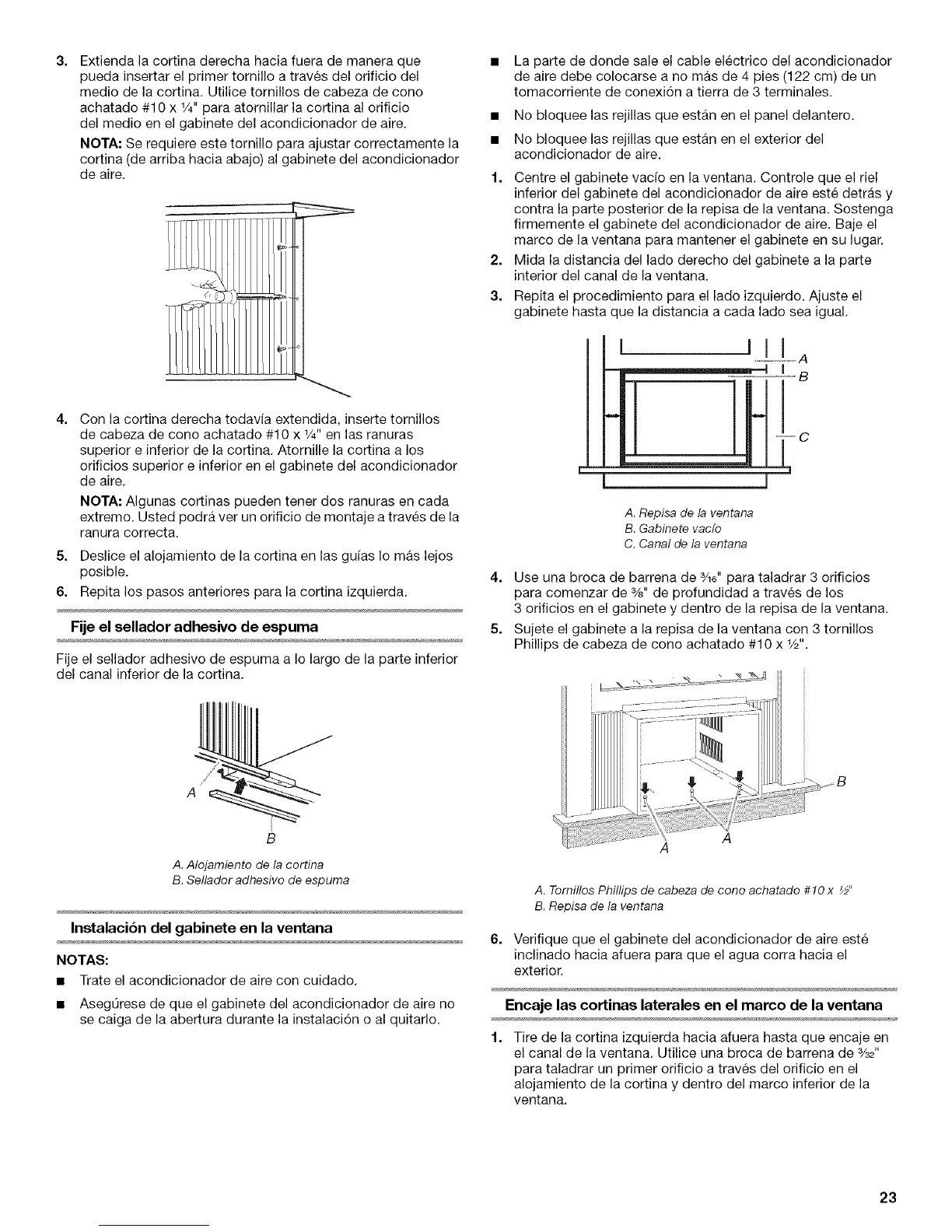 cortina (de arriba hacia abajo) al gabinete del acondicionador