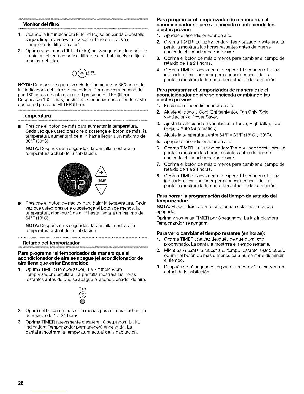 Presione el bot6n de menos para bajar la temperatura. Cada