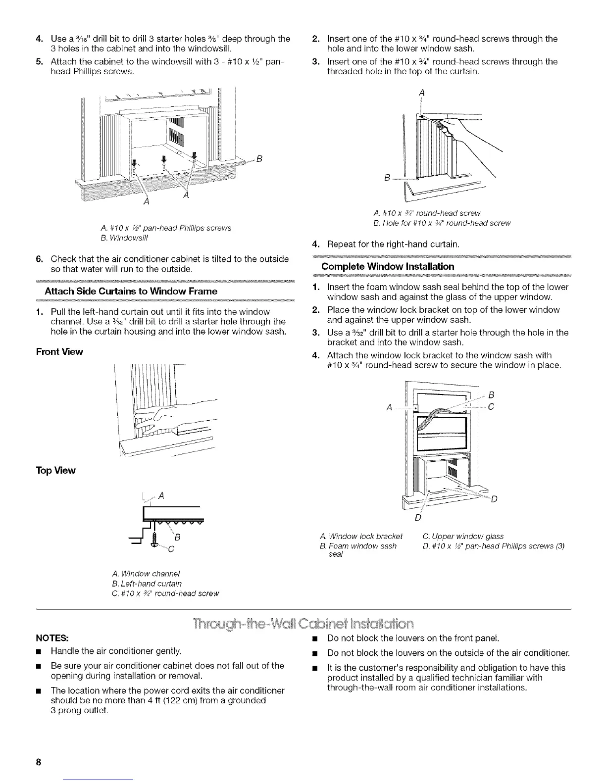 Attach the cabinet to the windowsill with 3 - #10 x 1/2"pan-