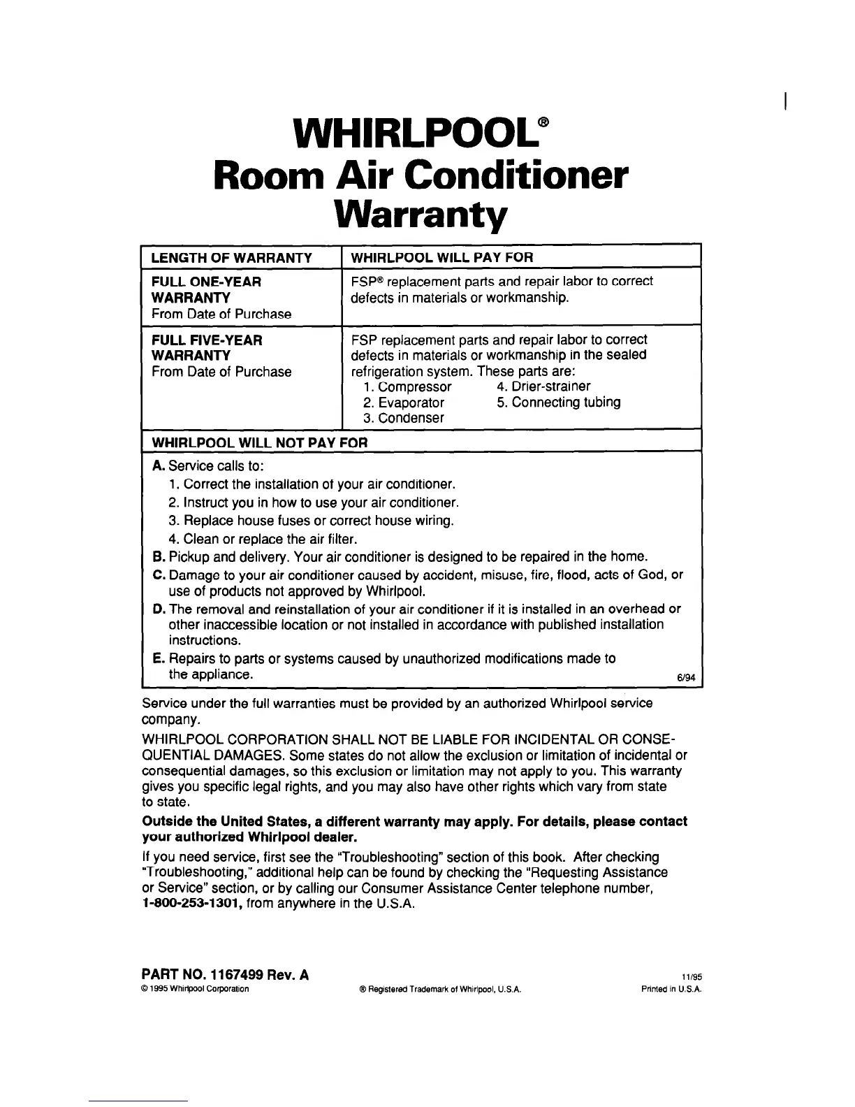 6. Pickup and delivery. Your air conditioner is designed to be repaired in the home.