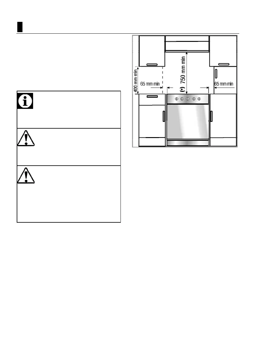 på 750 mm over ovnens overflate.