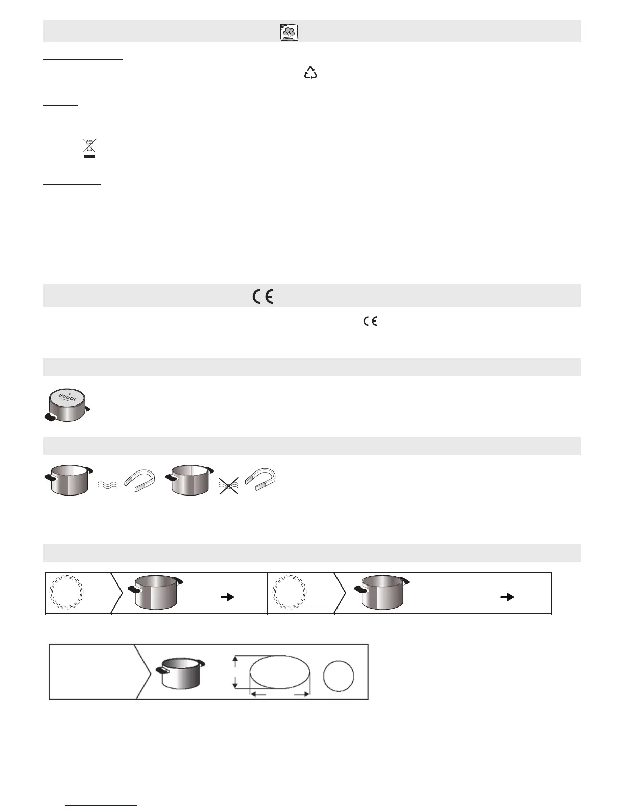 • Use pots and pans with bottom width equal to that of the cooking zone.
