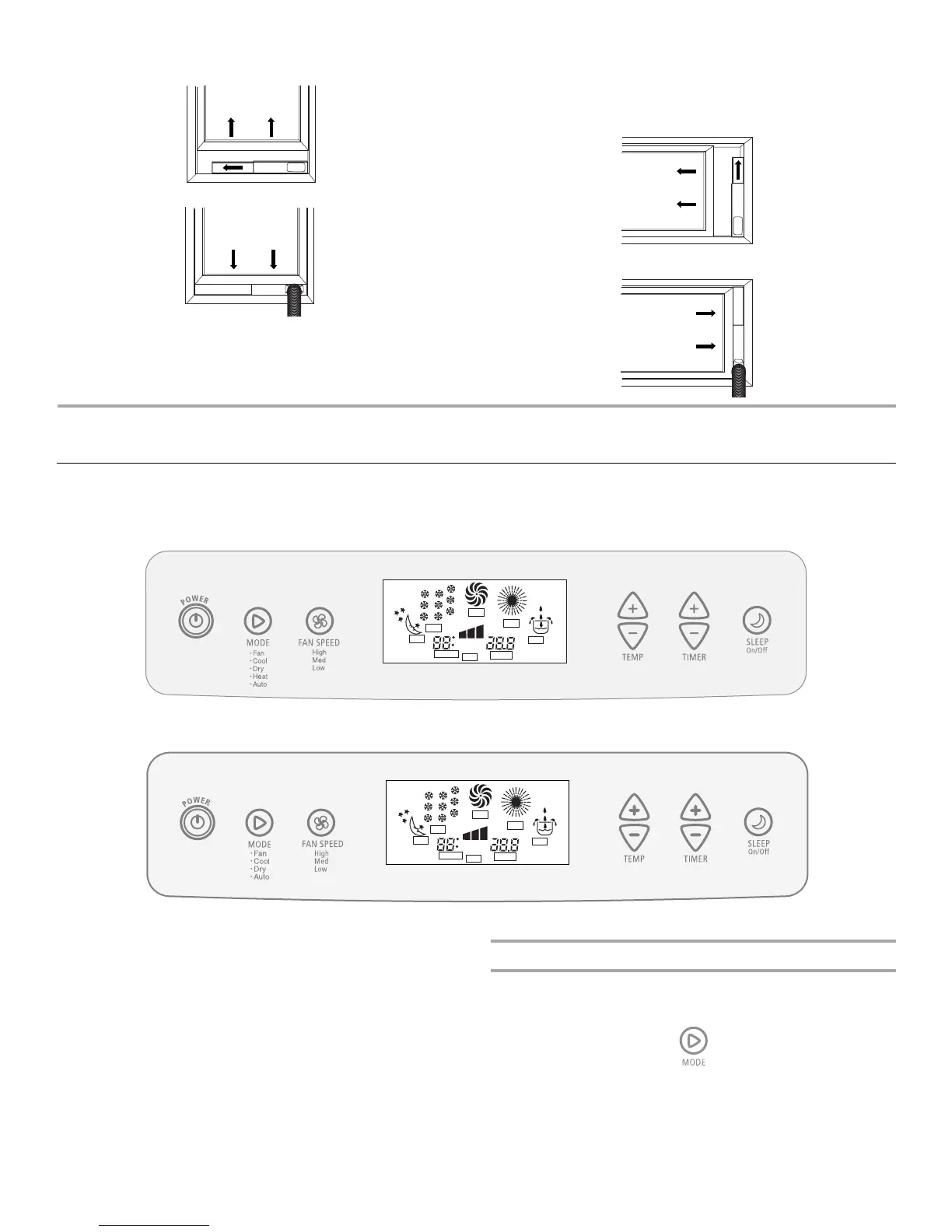 Appuyer sur MODE pour sélectionner Fan, Cool, Dry, Heat