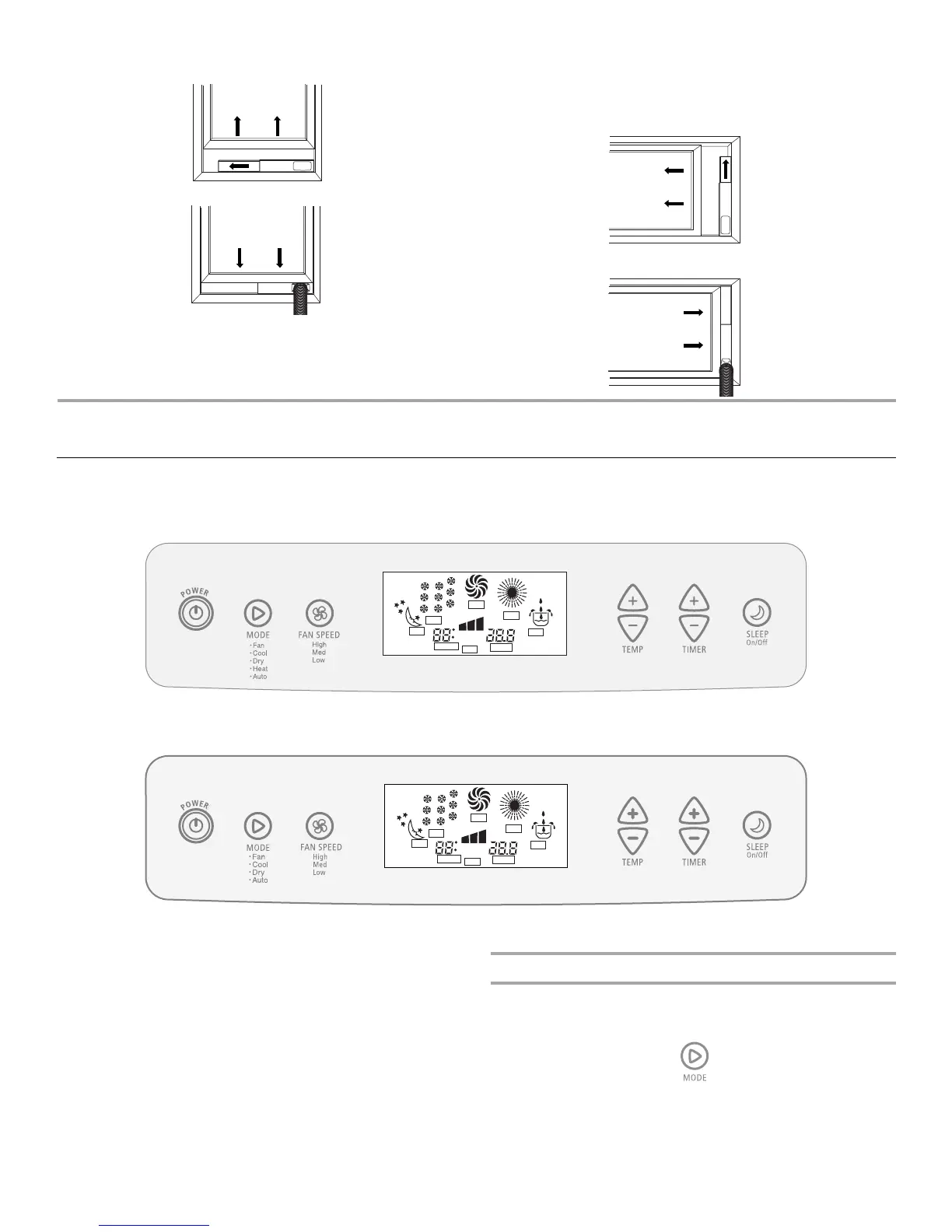 Press MODE to choose Fan, Cool, Dry, Heat (heating models