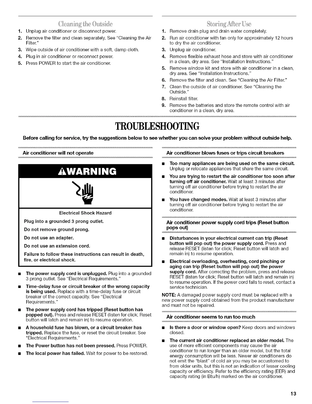 7. Clean the outside of air conditioner. See "Cleaning the