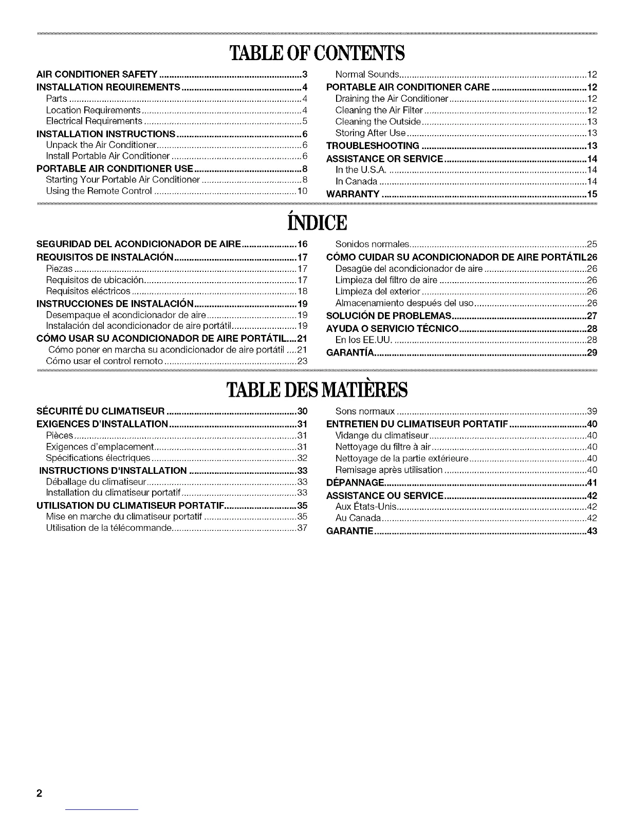 PORTABLE AIR CONDITIONER CARE ...................................... 12