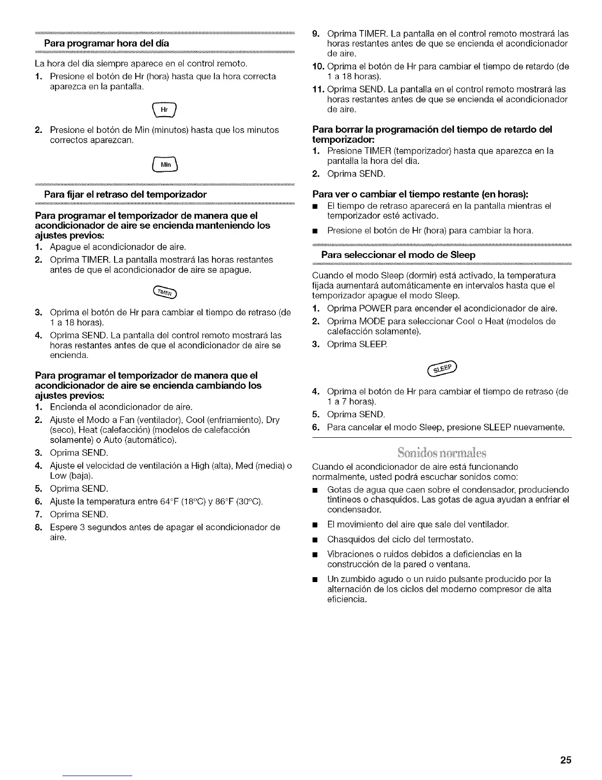 9. Oprima TIMER. La pantalla en el control remoto mostrara las