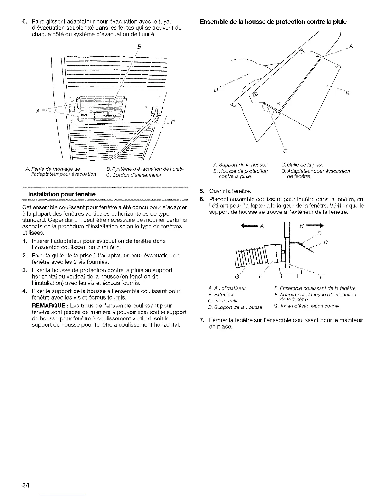 1. Inserer I'adaptateur pour evacuation de fen_tre dans