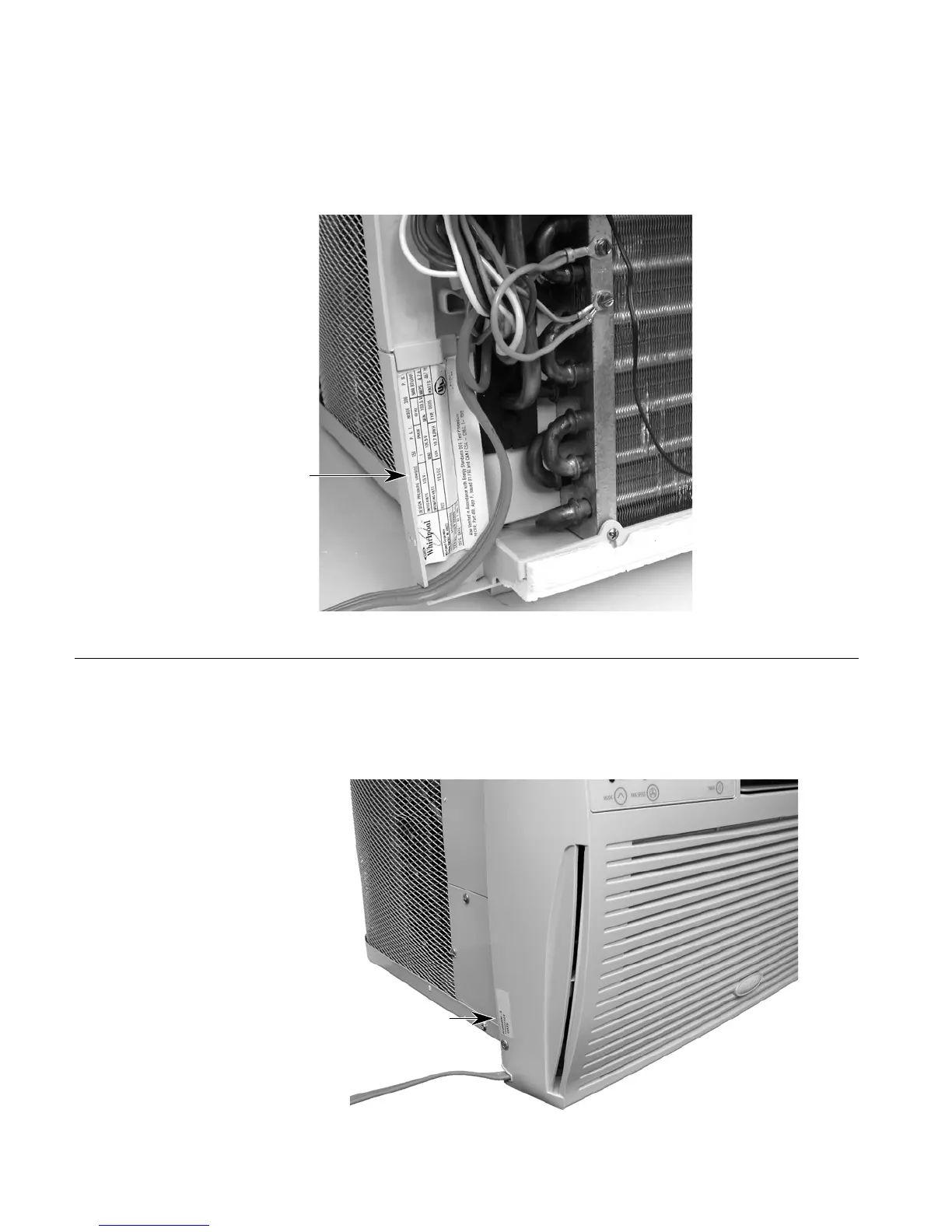 Whirlpool ACQ062MM - MODEL & SERIAL NUMBER LABEL LOCATIONS; TECHNICIAN LABEL LOCATION; CONSUMER LABEL LOCATION