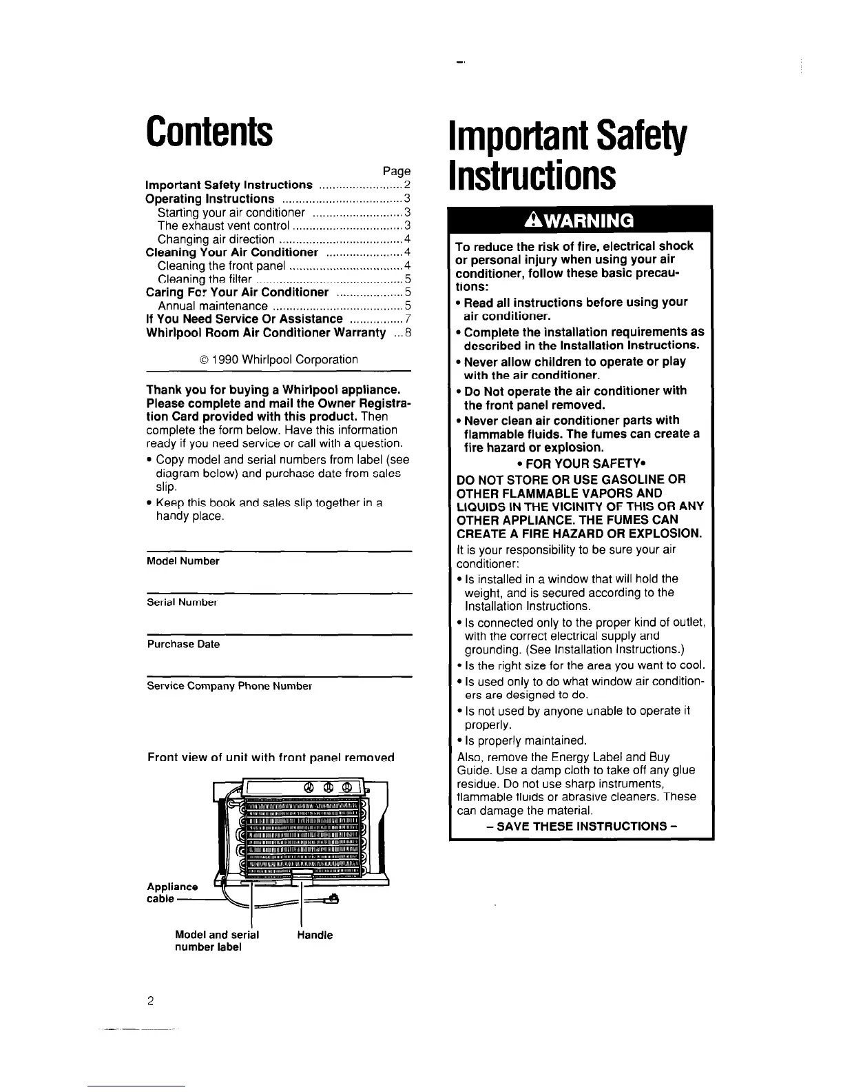 Whirlpool Room Air Conditioner Warranty