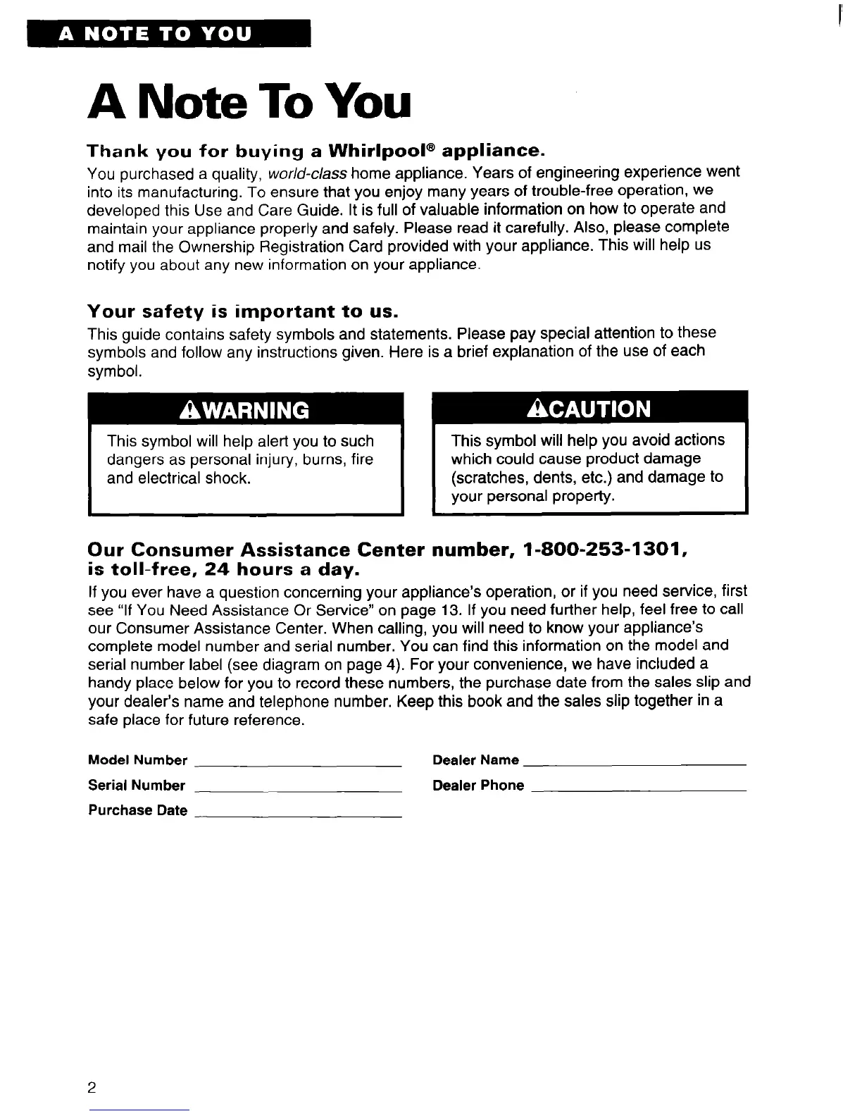 Thank you for buying a Whirlpool@ appliance.