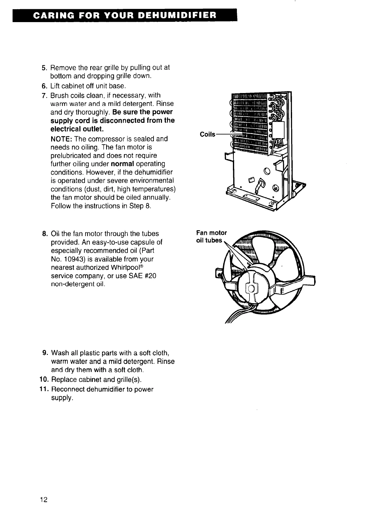 8. Oil the fan motor through the tubes