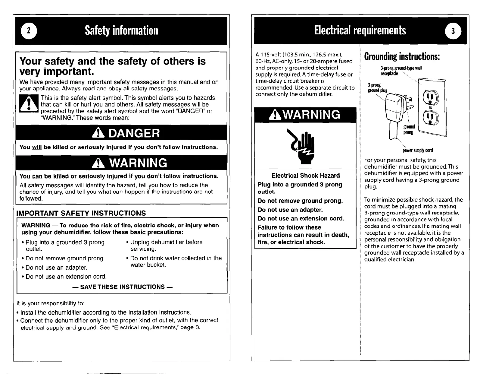 Whirlpool AD25G0 - Mportant Safety Instructions