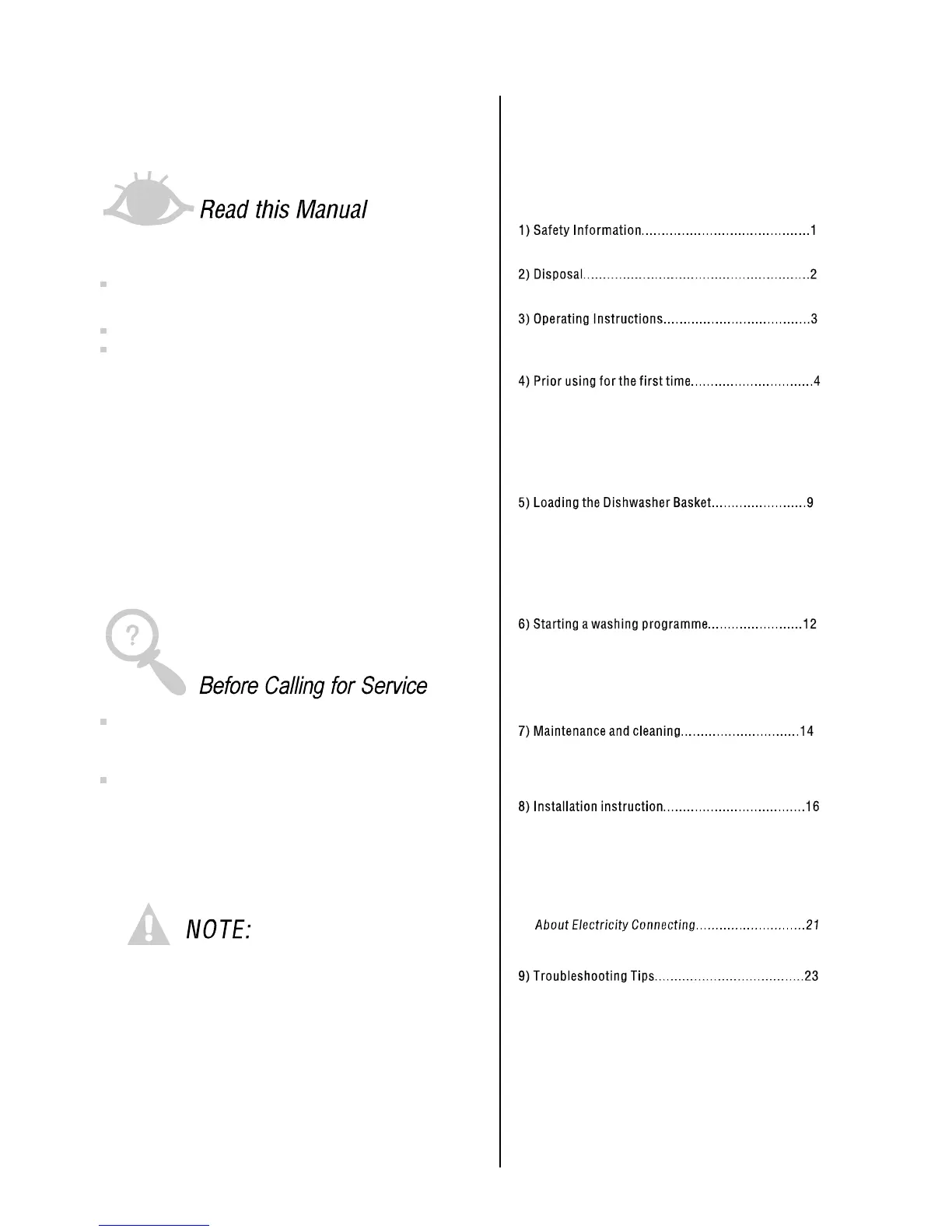 Before calling for service.................................23