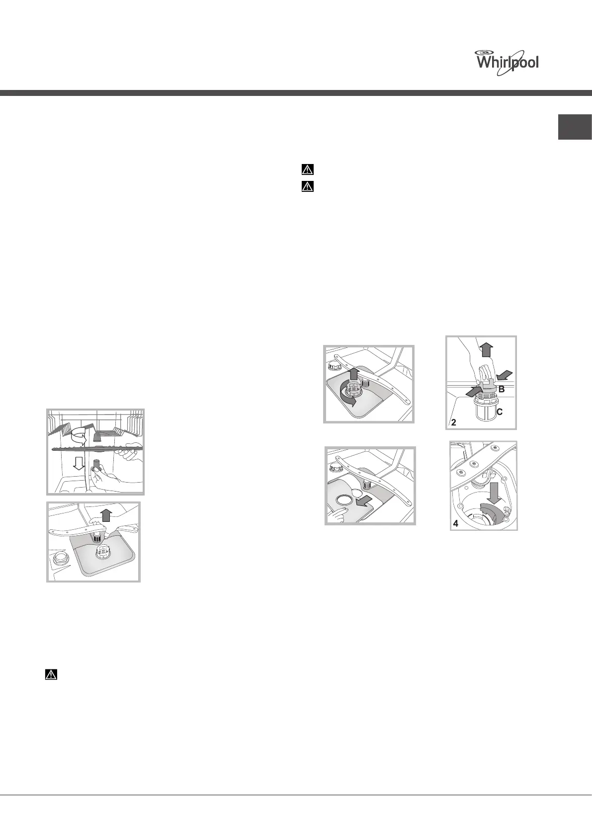 1. Завъртете цилиндричния филтър C в посока обратна на