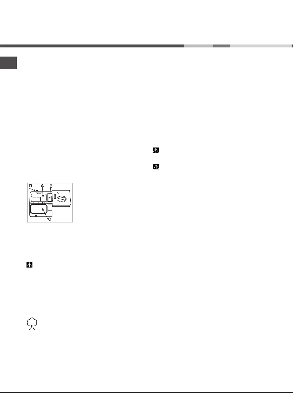 Atveriet mazgāšanas līdzekļa dozatoru, izmantojot pogu D, un iemēriet