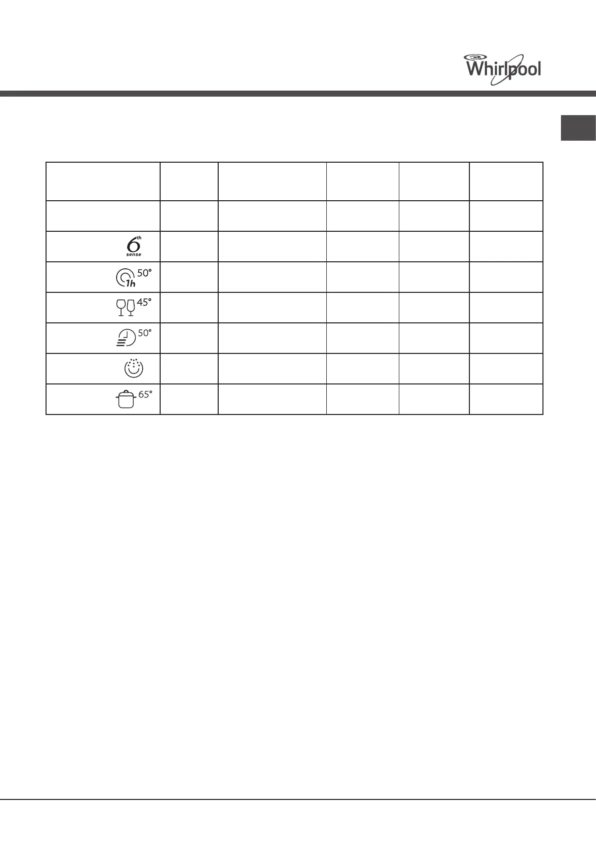 5. Fast cycle to be used for slightly dirty dishes, with no dried-on food.(Idealfor2placesettings)21gr/ml–1Tab