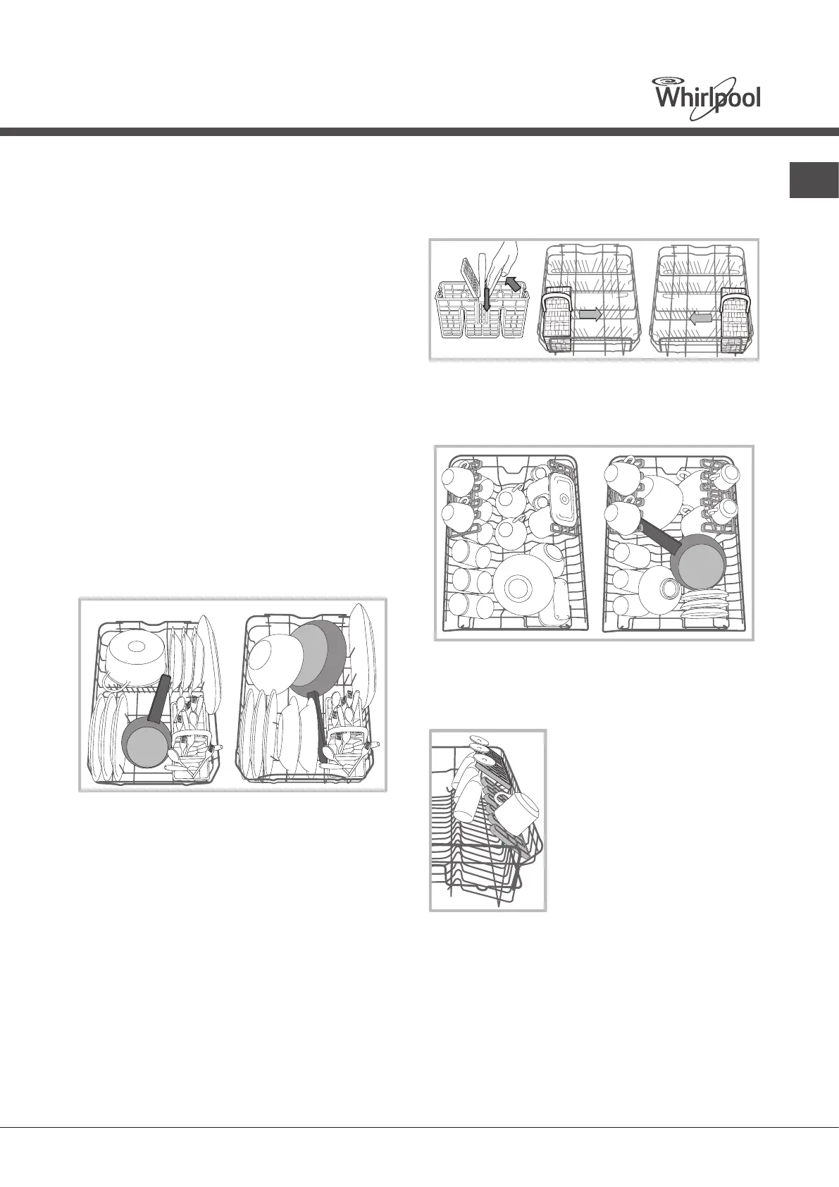 bestek, etc. plaatsen. Grote borden en deksels moeten bij