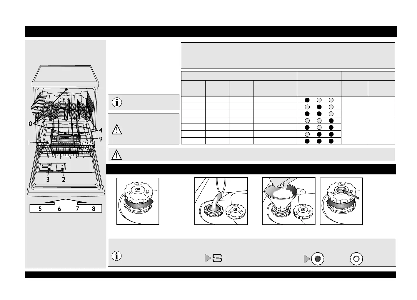 Salt indicator on the control panel Salt indicator on the salt reservoir cap