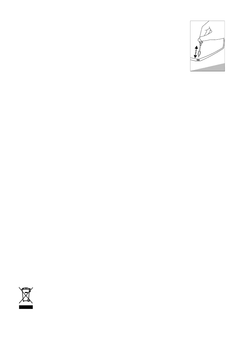 Chcete-li ho vyrovnat, nastavte přední nohy. Zkontrolujte, zda se spotřebič nedotýká