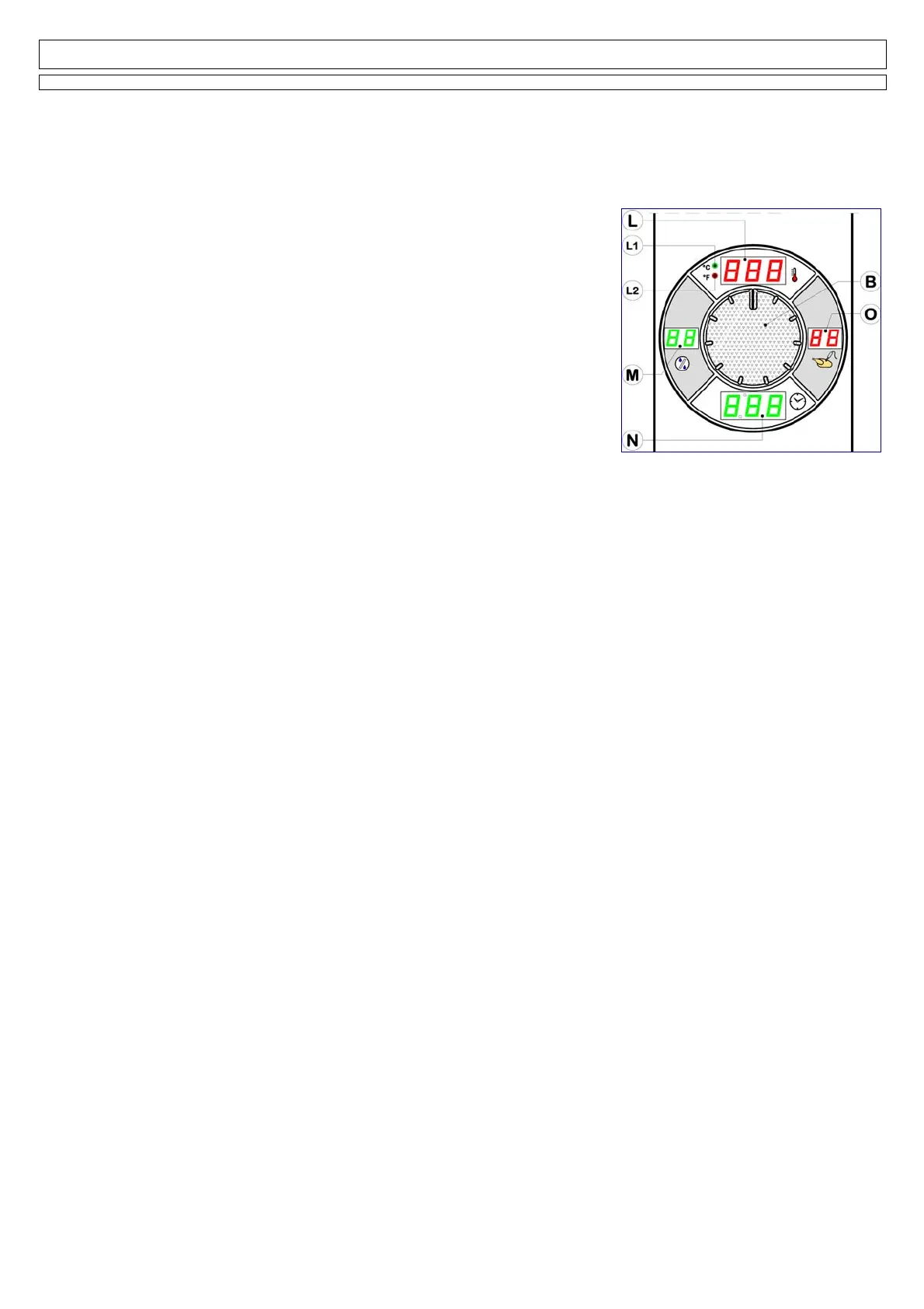 1 selección y memorización de la temperatura en la cámara de cocción, en el display (L). Los led luminosos (L1) y (L2) indican si el valor de la