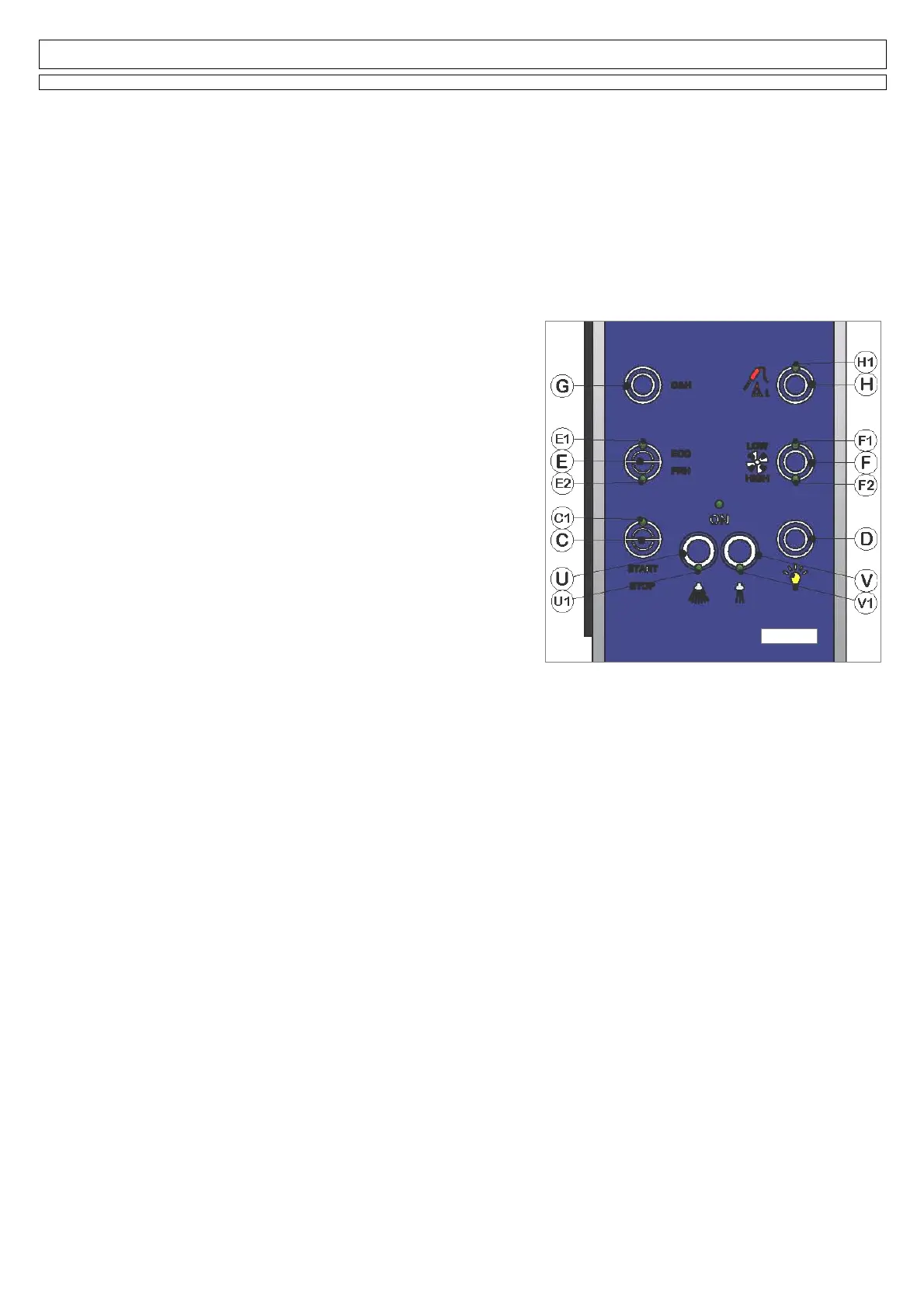 indicated by the green LED (F2). Button (F) allows it to operate at low speed.