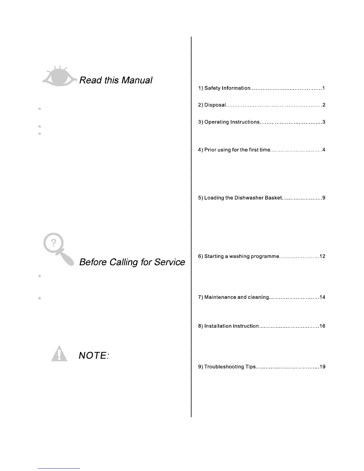 At tentio n b efore o r afte r loading the D ish wa sh er