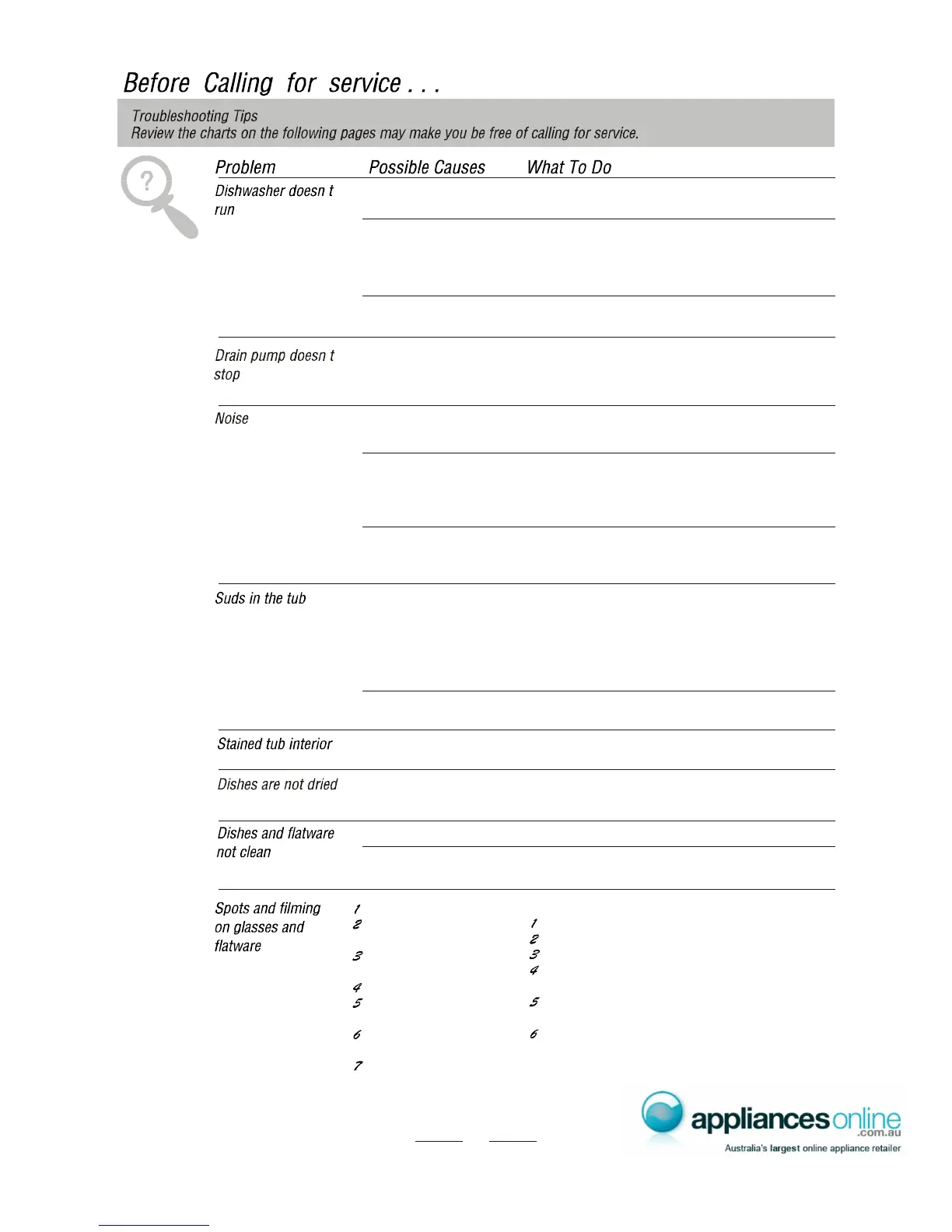 Improper rack loading Make sure that the action of the detergent dispenser and