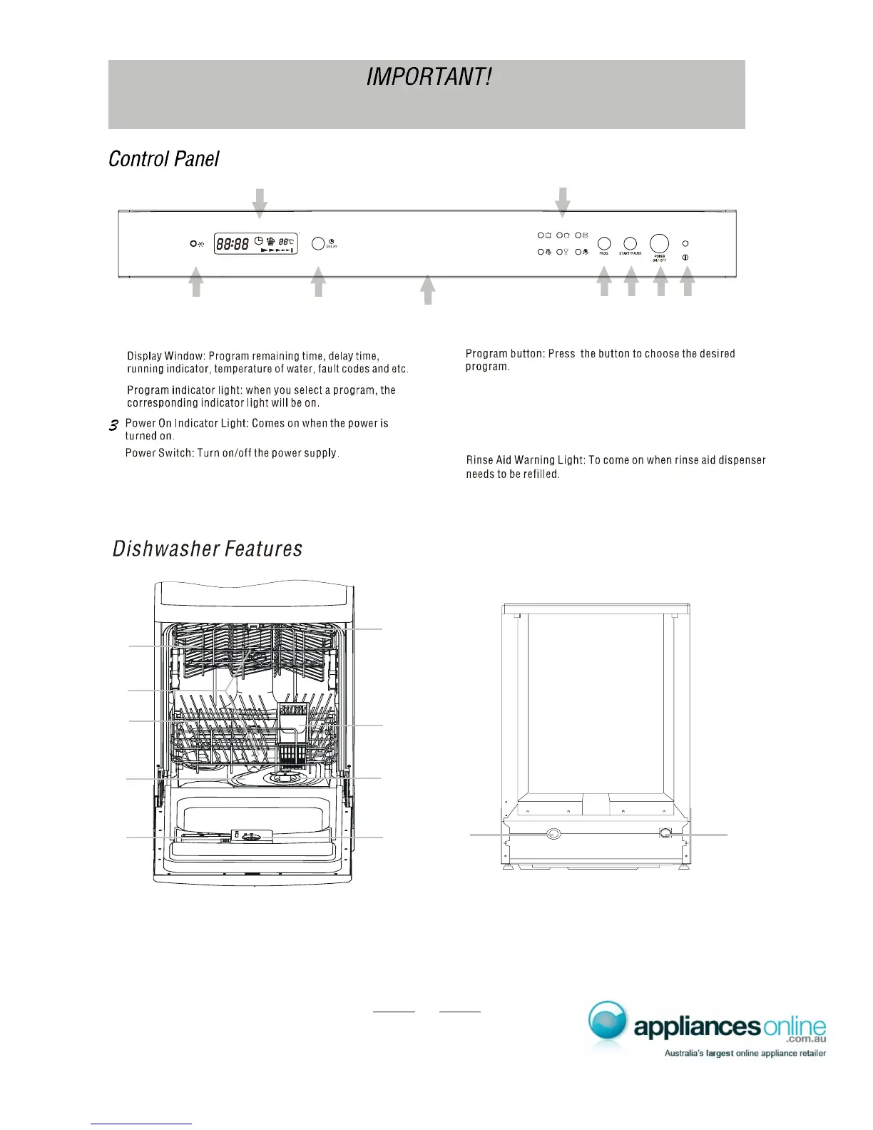 Whirlpool ADP6000WH - Control Panel & Dishwasher Features