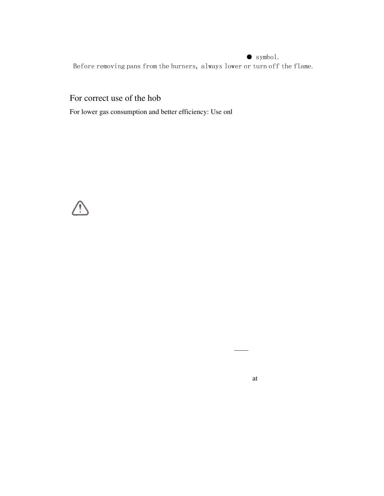 For correct use of the hob