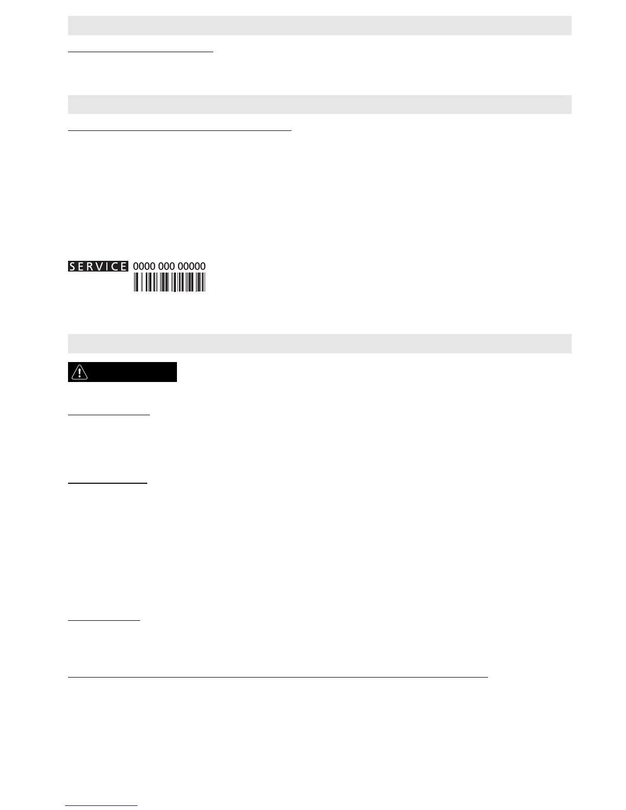 • the service number (number after the word Service on the rating plate), located on the right hand edge of the oven cavity