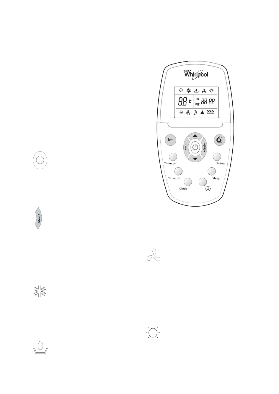 • Heating - Aquece a divisão. Pressionar Fan