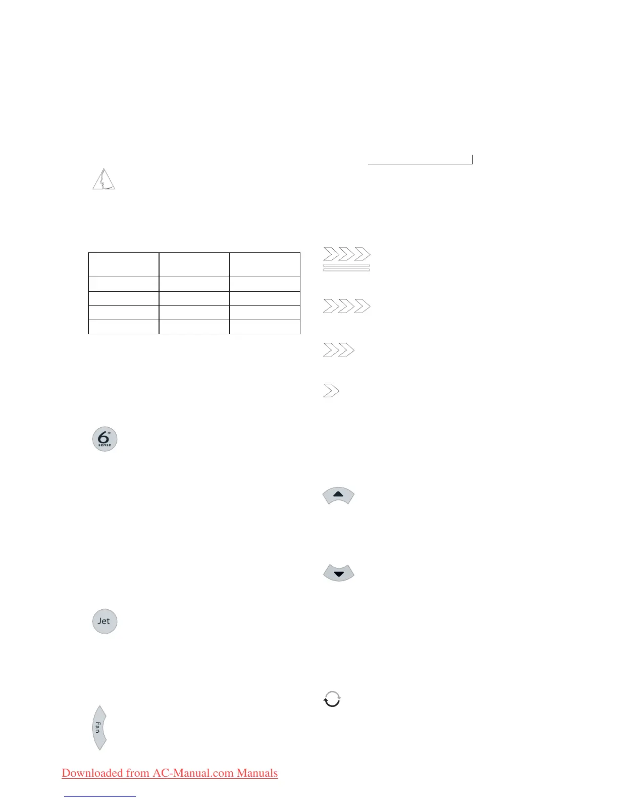 NOTE: 6th Sense mode button does not operate
