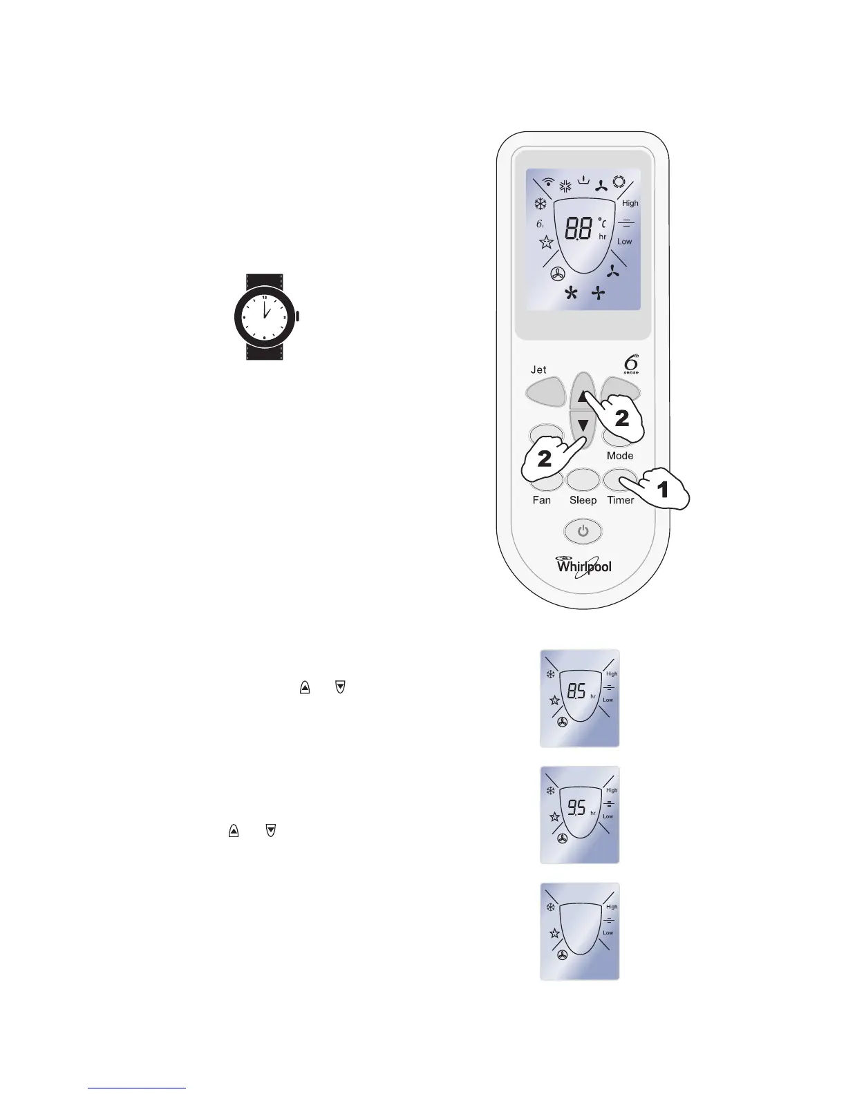 Press the TIMER button, "h" flashes on the