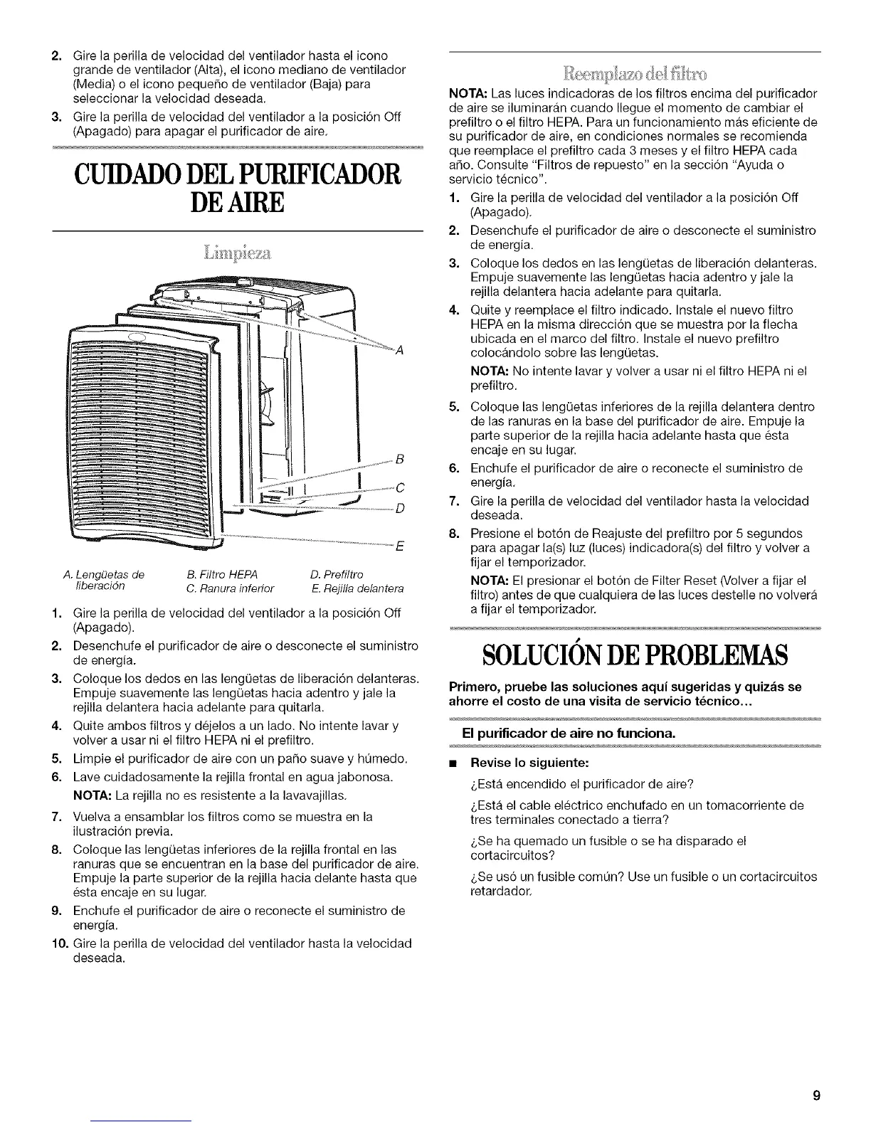 prefiltro o el filtro HEPA. Para un funcionamiento mas eficiente de
